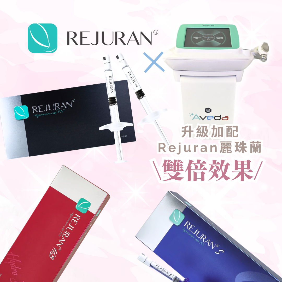 射頻微針能夠把毛孔通道打開,先進行破壞後重組,把射頻中的熱能傳送至肌底,有效激發膠原自生; 加入麗珠蘭Rejuran進行療程,有助精華直達膠原層,在兩者配合下能夠發揮雙倍效果!