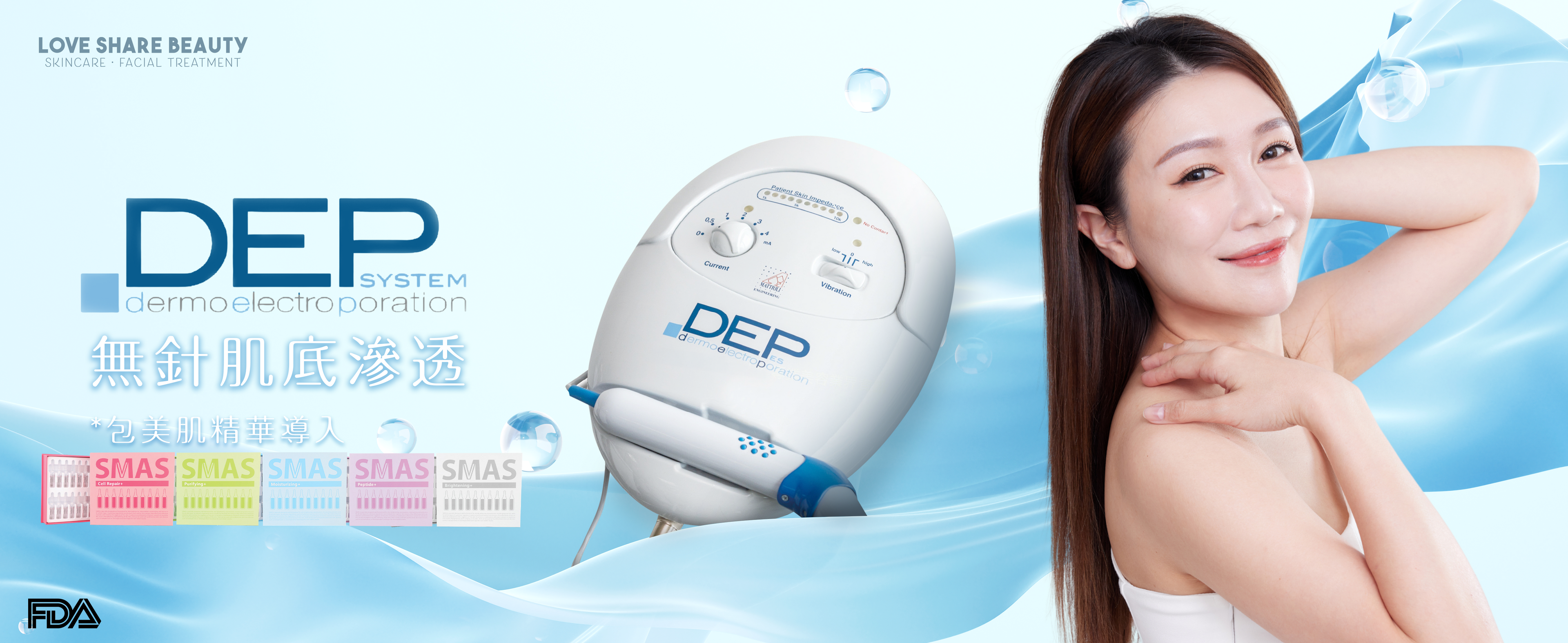 DEP®獲FDA認證為「針劑注射的替代品」,並非一般超聲波或離子導入儀器。DEP®利用「無創電子皮膚穿透技術」,以低脈衝電流2200H改變細胞極性,皮膚於2秒之間便會打開無數微孔,產生水通道蛋白,構成細胞水基通道,允許大中小分子精華成分進入皮膚,免卻針筒注射,無創無痛,便可以做到媲美醫美注射的效果!