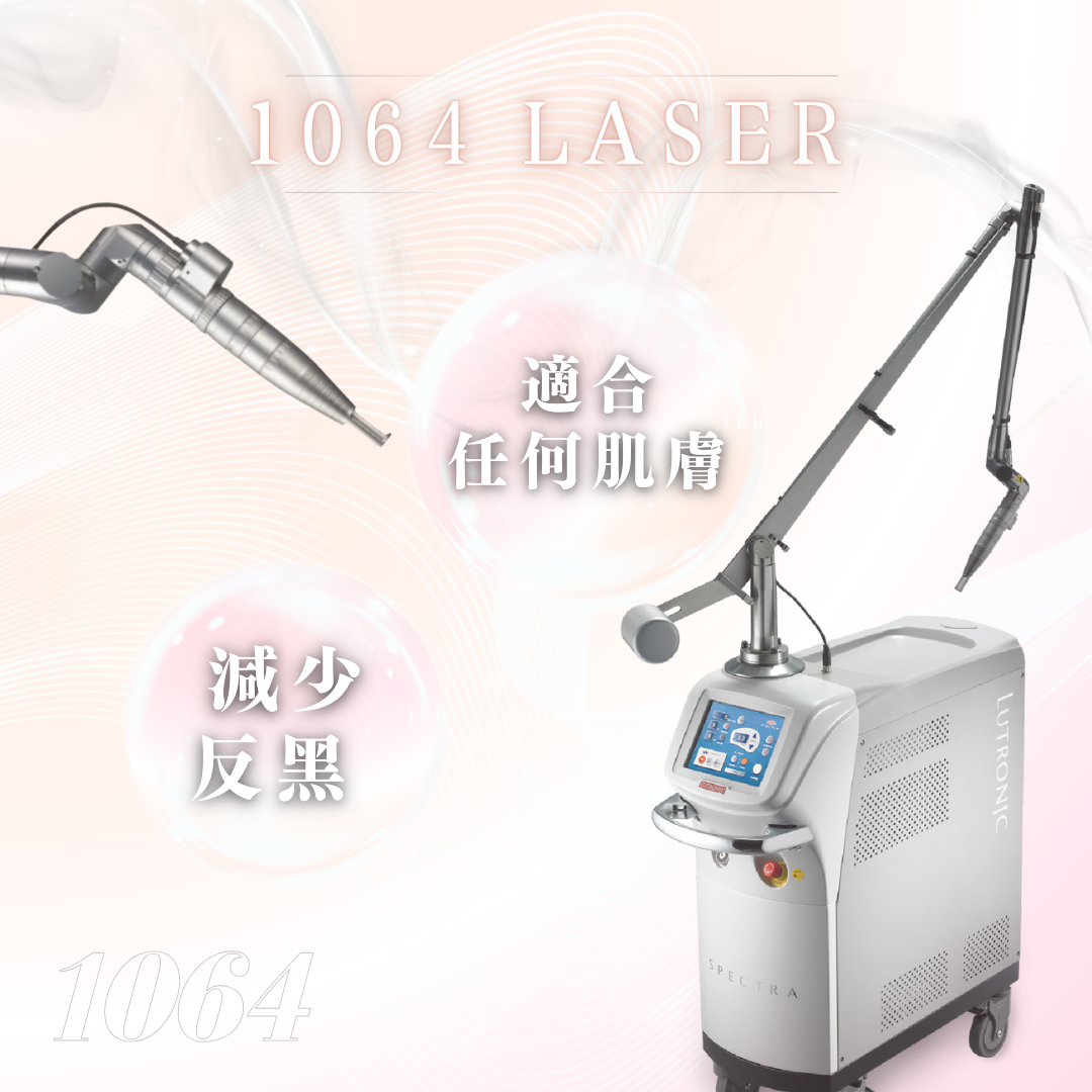 1. 1064Laser: 瞬間打散深層色素,逐步改善皮膚色素問題。