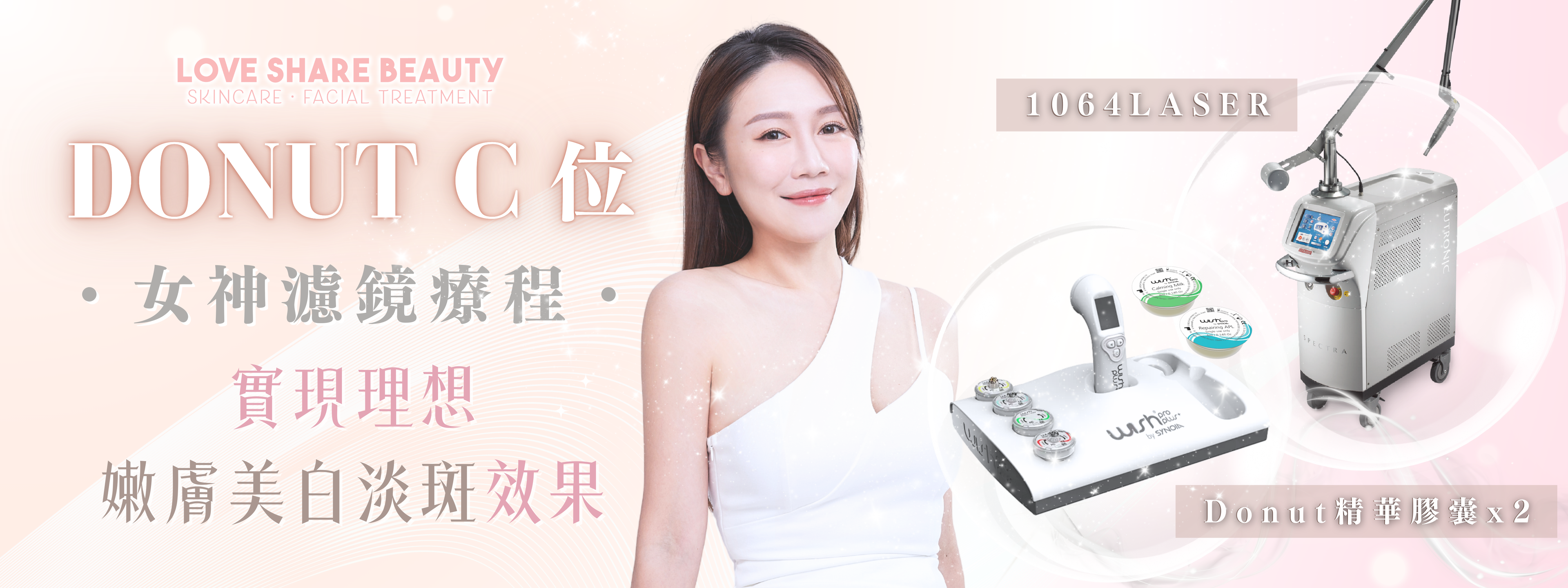 療程結合1064Laser及2粒Donut精華膠囊,是客人最愛的嫩膚療程!