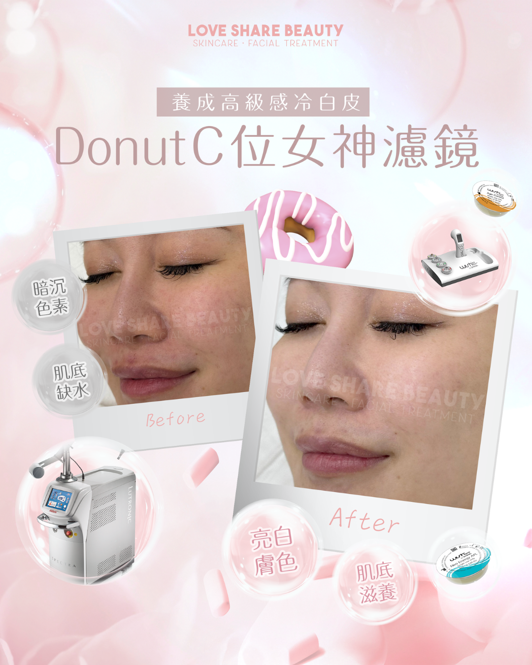Donut C位女神濾鏡療程 實現理想的嫩膚美白淡斑效果