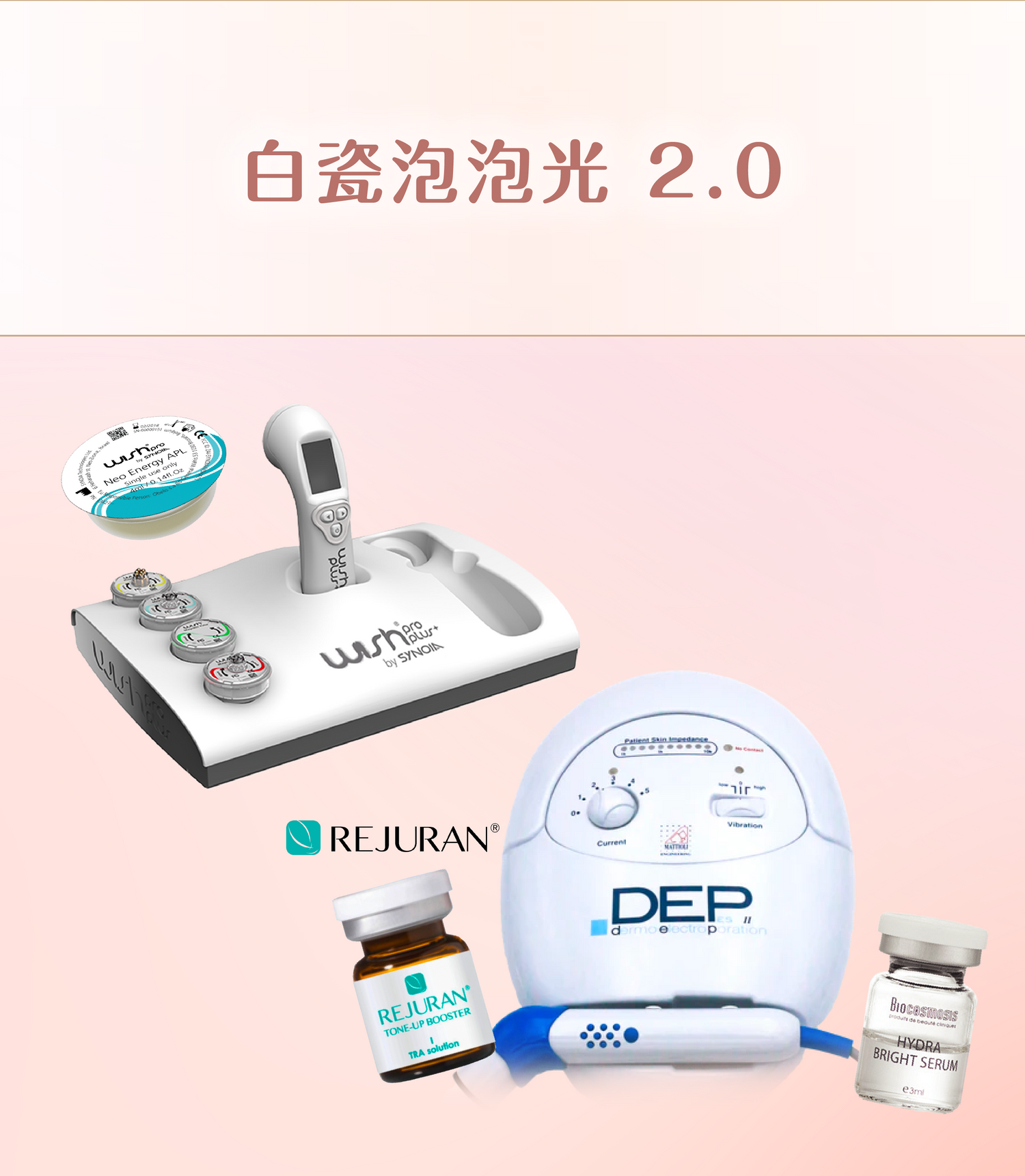 「白瓷泡泡光」療程融合三大國際尖端美容科技,透過無創、高效、舒適的方式,將美白煥亮、深層補水和肌膚修復三重功效合而為一。療程專為追求白皙透亮、水潤光澤肌膚的現代女性設計,從肌底改善暗沉、粗糙、缺水等問題,讓肌膚如白瓷般細膩光滑,由內而外綻放自然光澤。