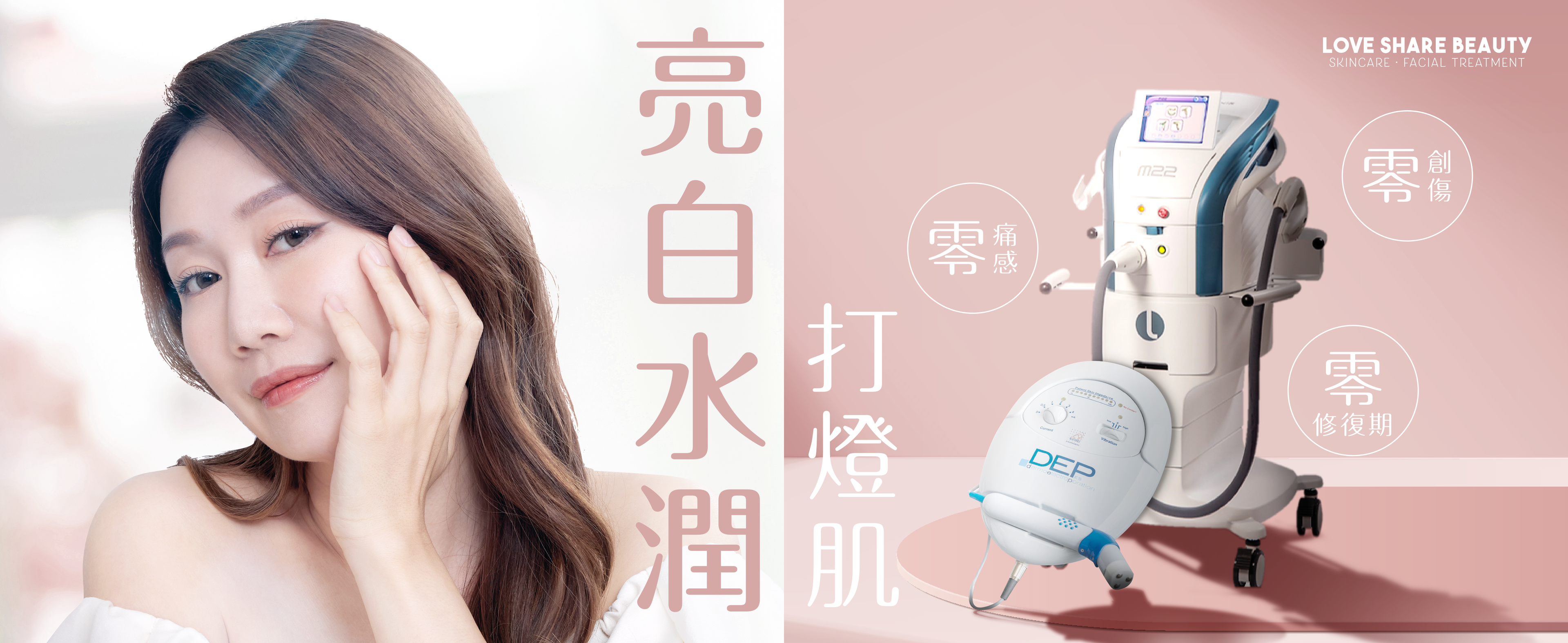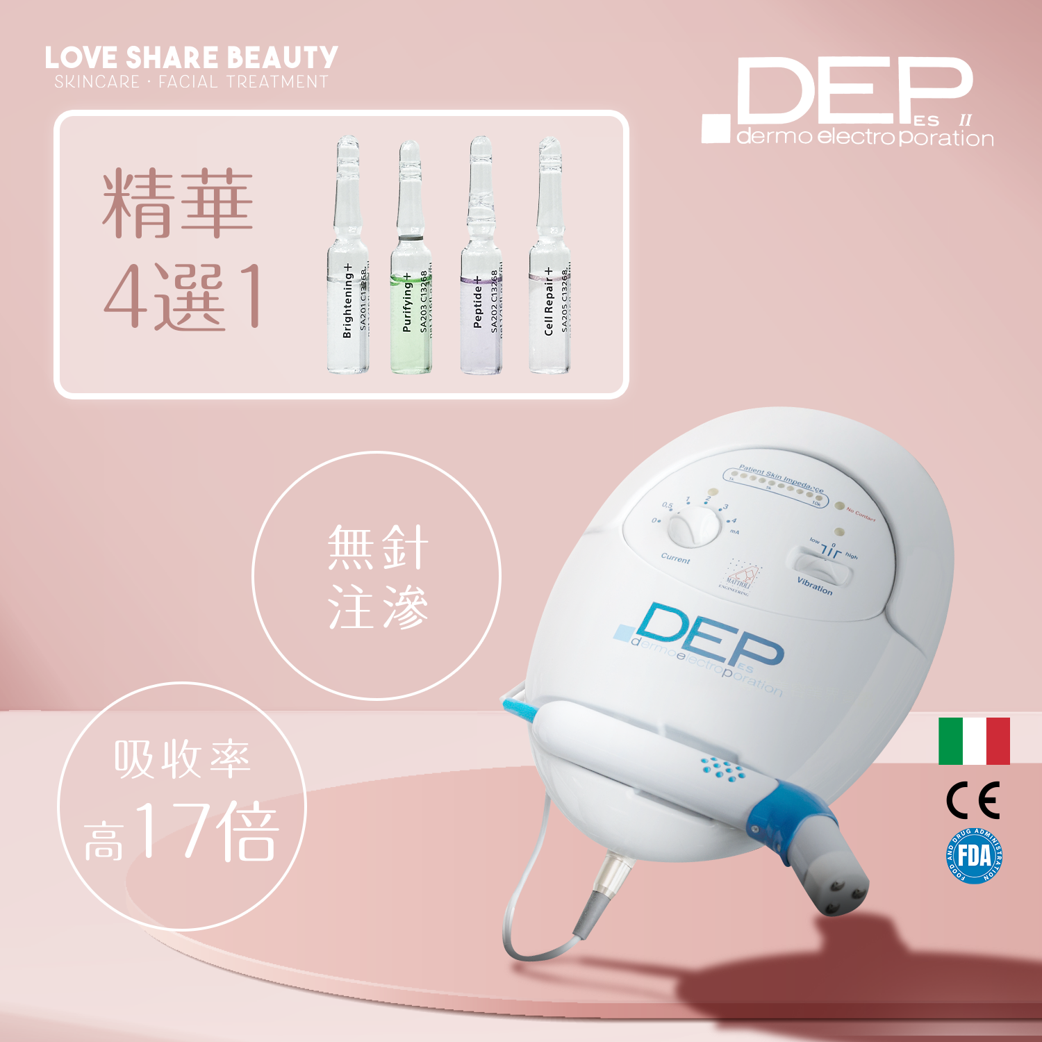 此療程結合M22光子嫩膚療程及DEP無針肌底滲透療程:M22光子嫩膚療程獲34項FDA認證及CE歐盟認證,擁有9塊濾片,可改善不同的皮膚問題,保有原本脈衝光的優點外,還改善了脈衝光的缺點,能量更精準、疼痛感更輕微更有效率。DEP®無針肌底滲透療程獲FDA認證為「針劑注射的替代品」,並非一般超聲波或離子導入儀器,無創無痛地導入大中小分子精華成分進入皮膚。